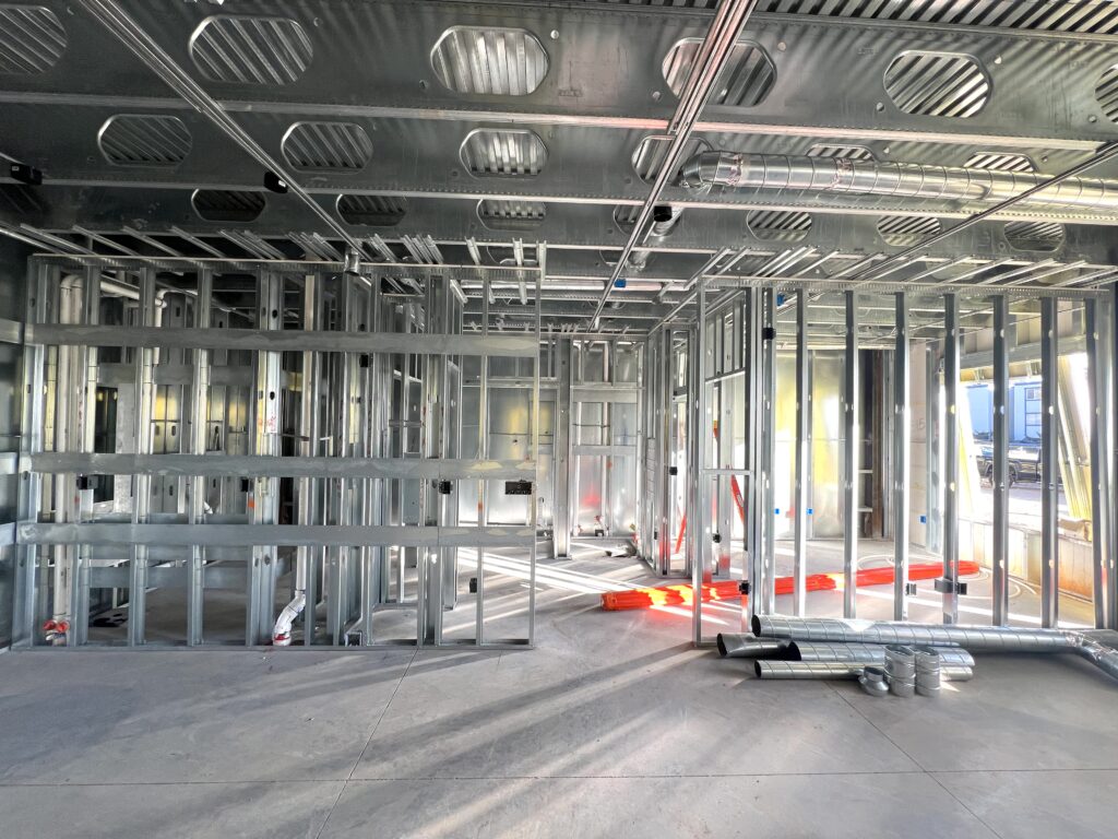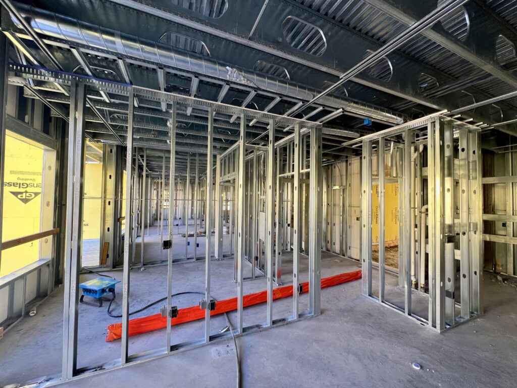 The project incorporates steel supplied through CWallA as part of the structural framing, including 33 and 43 mil studs along with standard and slotted track and accessories. These components contribute to the strength, flexibility, and long-term performance required for a modern office environment.
